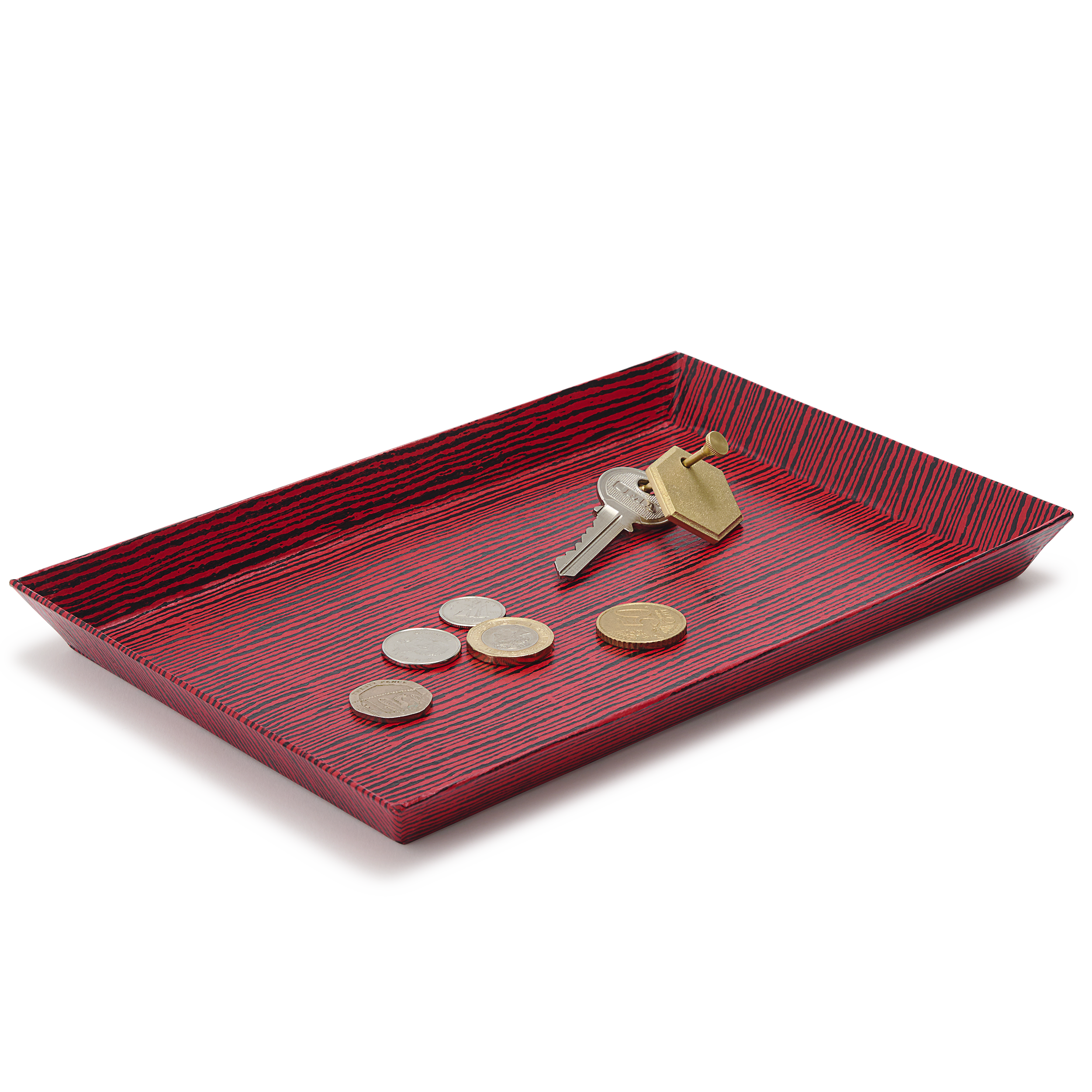 Call it a tray or a vide-poche ("empty-your-pockets" en français), either way a very practical and versatile place to empty pockets, gather small objects or keep things in steady rotation. Available in two sizes and seven designs and covered in glossy lacquer or patterned urushi paper.