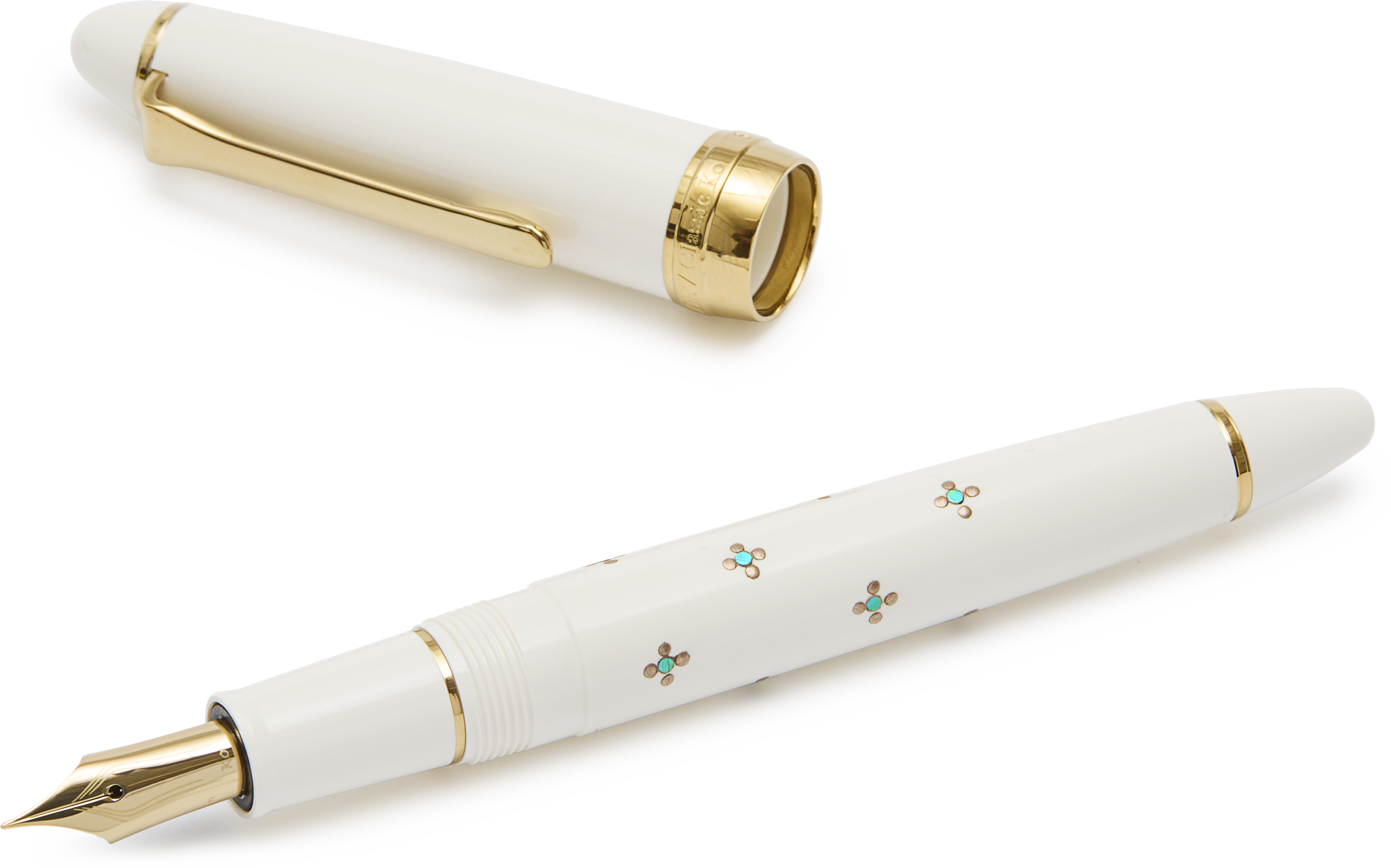 Sailor’s Classic Ko Fountain pen is in fact a Maki-e, but handled in a contemporary way, inspired by jewellery design, away from the usual tropes of japanese iconography, the result is completely transformed. Using the same traditional materials, raden (abalone), silver and gold power and pearl in selective way has been extremely successful. It feels both historical, baroque, but also quite trendy and fresh. For the fashion conscious user, this pen feels relevant.