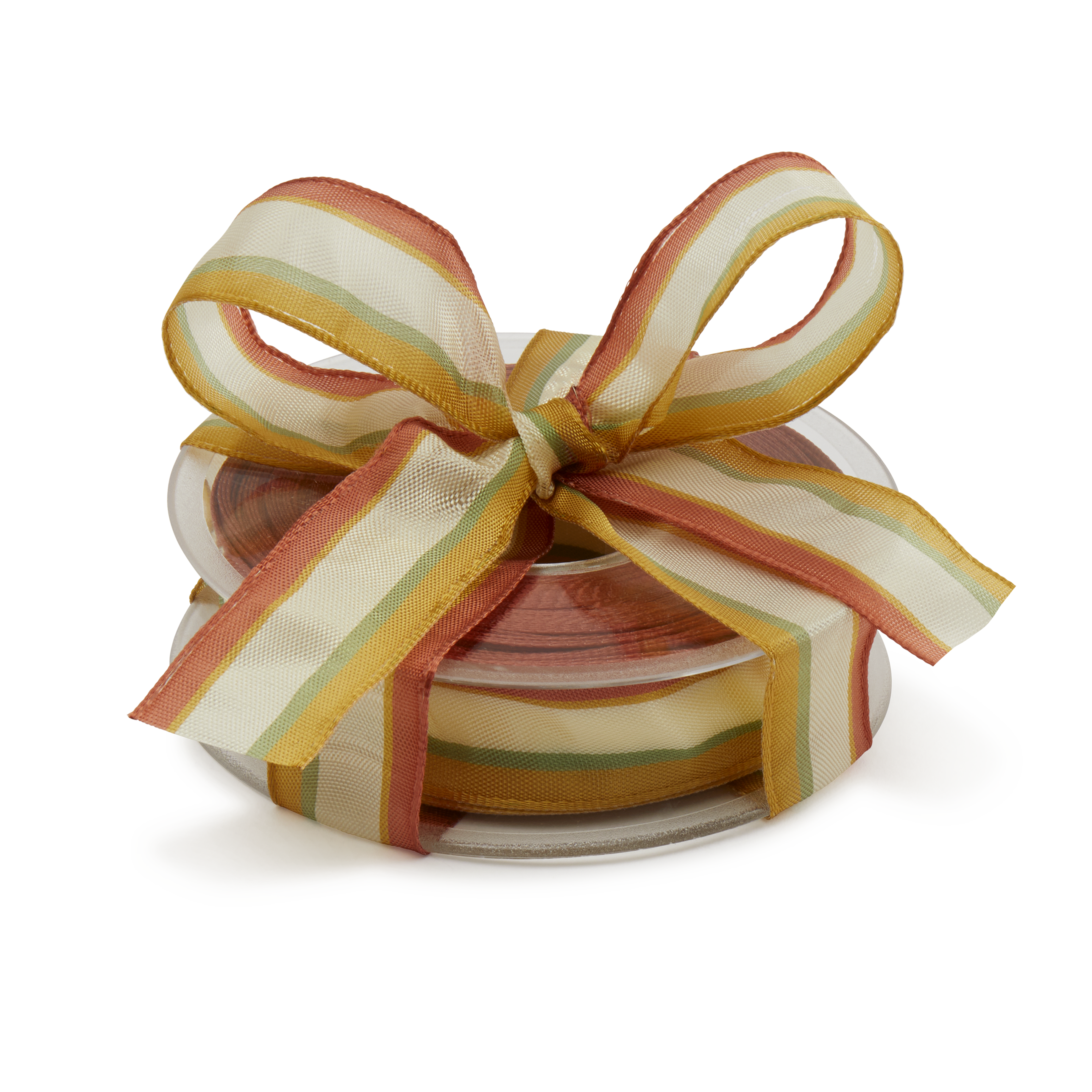 Wired Cream Brown Green Striped Ribbon, 20m roll