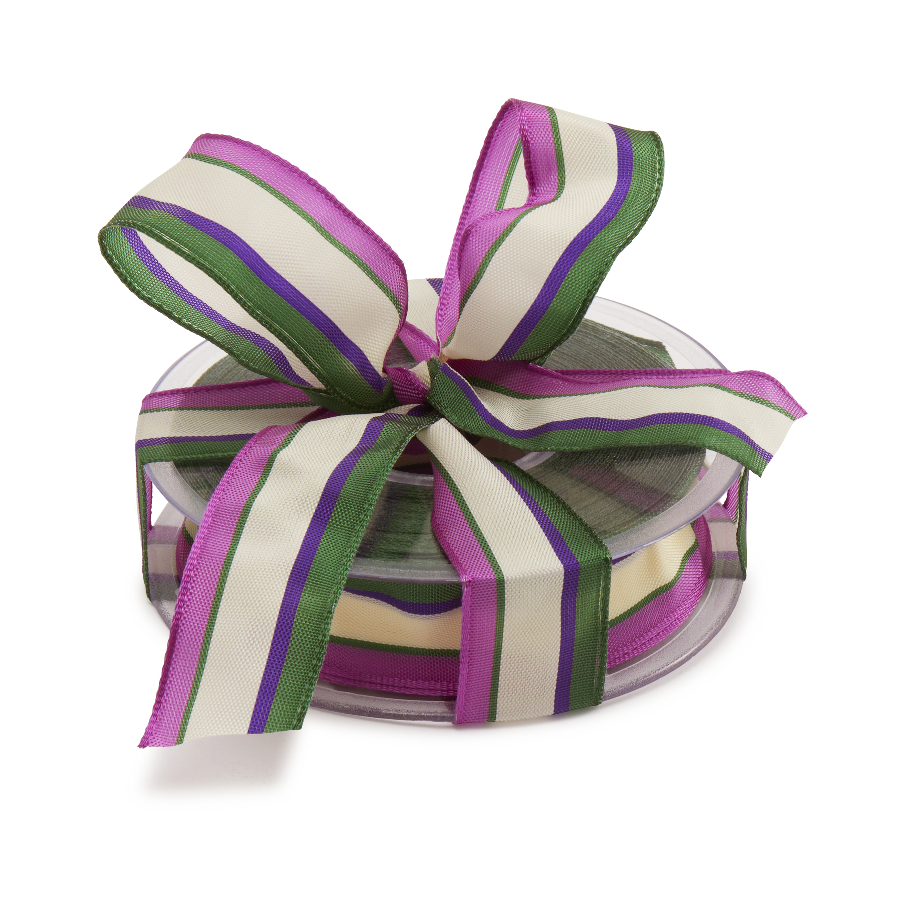 So, to remedy one of life's little miseries we are offering, after much negotiation and research with our suppliers, a generous 20m (that's a lot of ribbon) of premium quality ribbon. This classic striped trim is gently wired to make a wonderfully animated bow. It pairs nicely with geometric patterns, or even as a counterpart to a more fussy feminine pattern. .